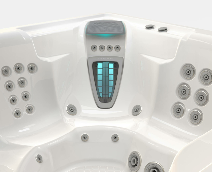 Der Vanguard ist ein Luxus-Spa mit Massageplätzen für 6 Personen. Er bietet eine 100% Filterung des Wassers auch während den Badens und verfügt über das freshWater Salzsystem.